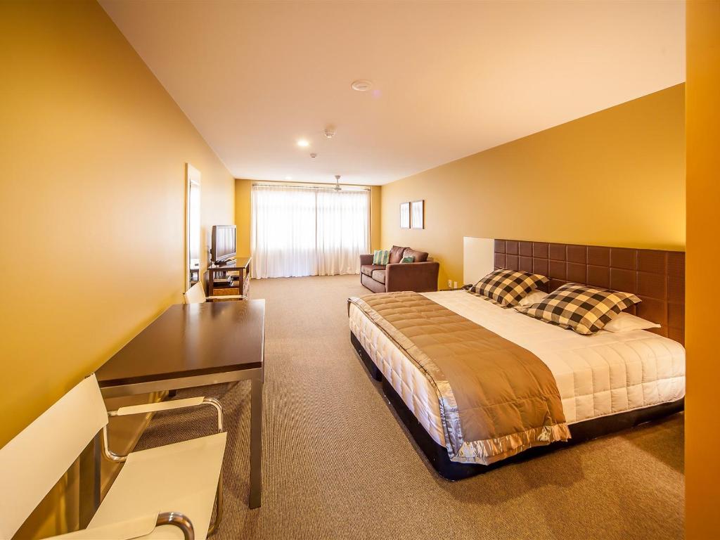 There are tea and coffee facilities in your room, along with a bar fridge, couch and tv with casting capabilities.